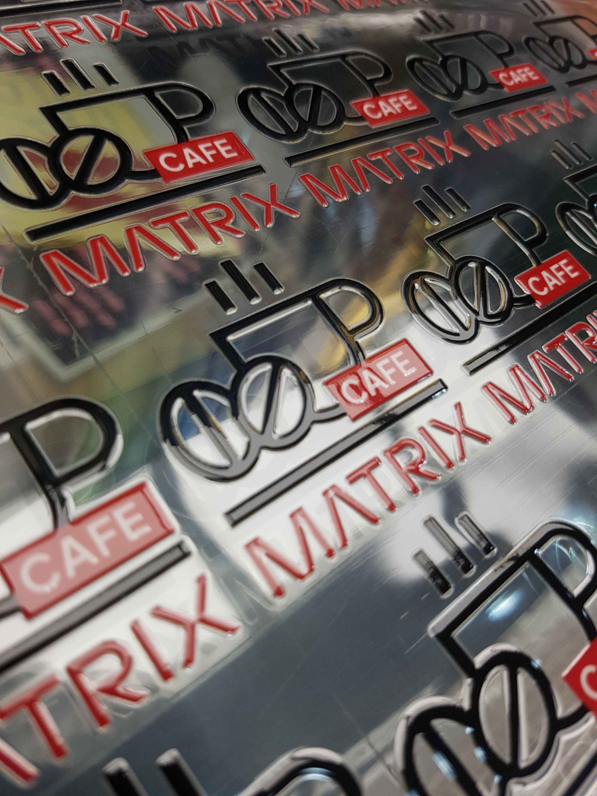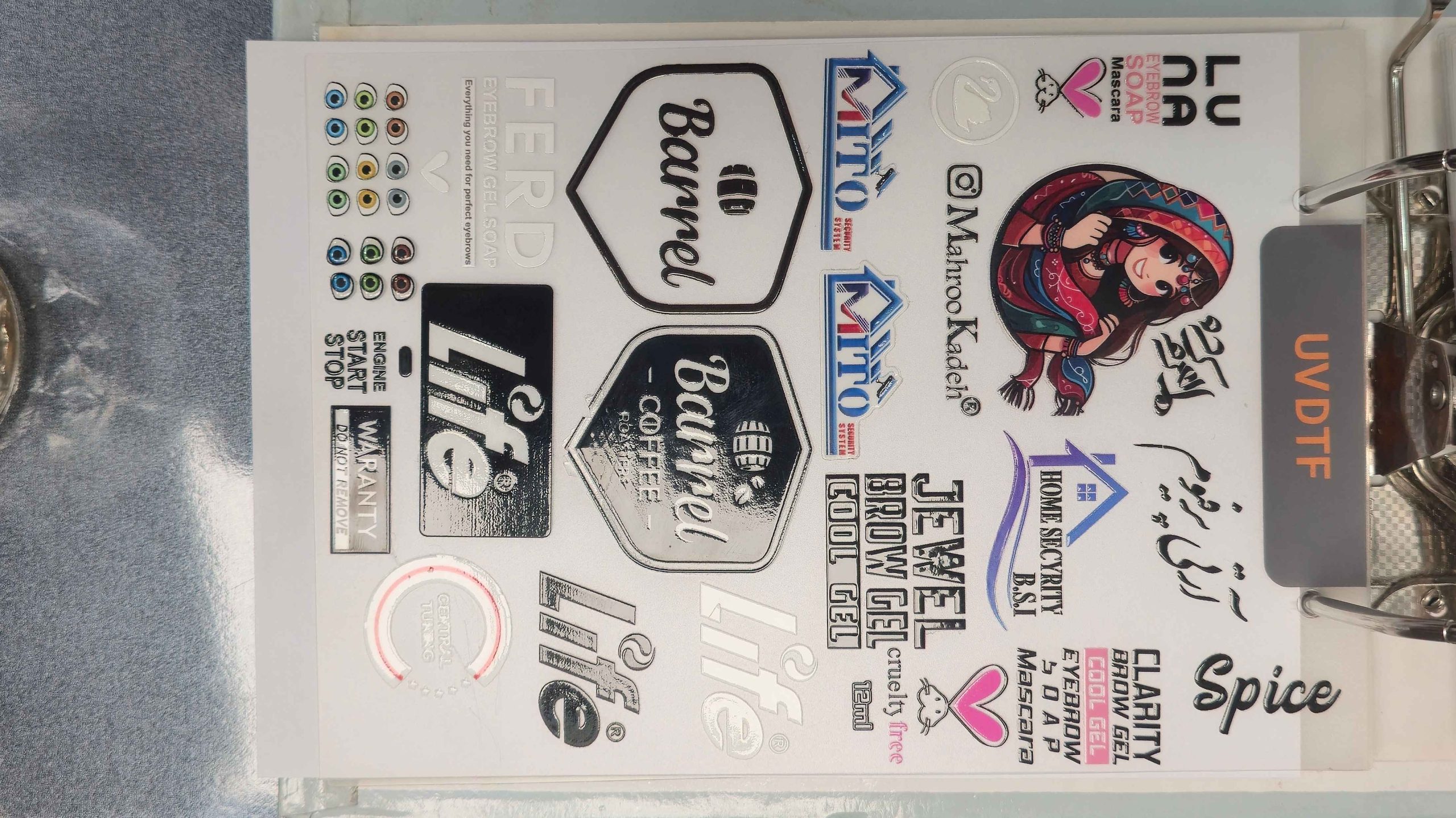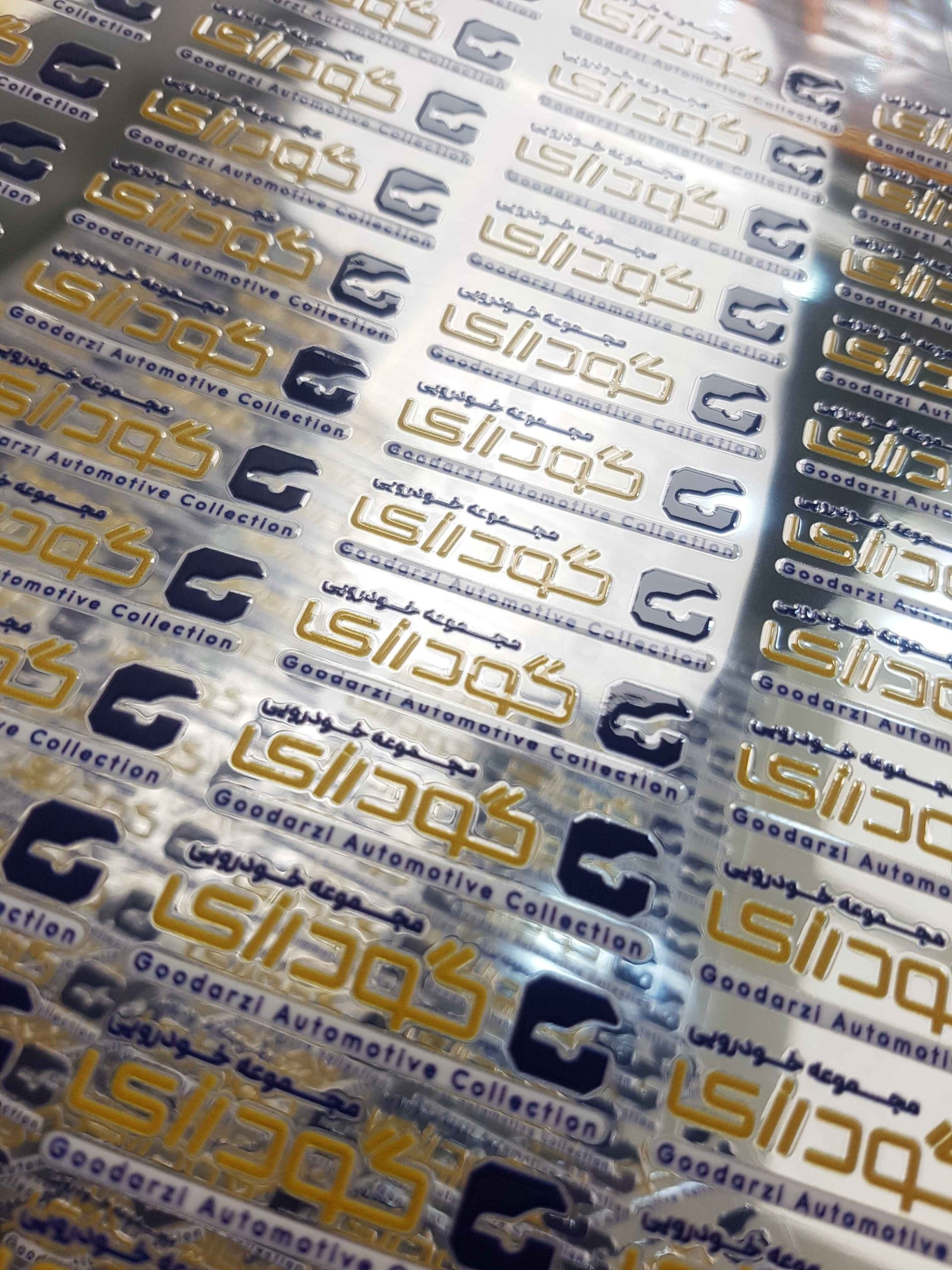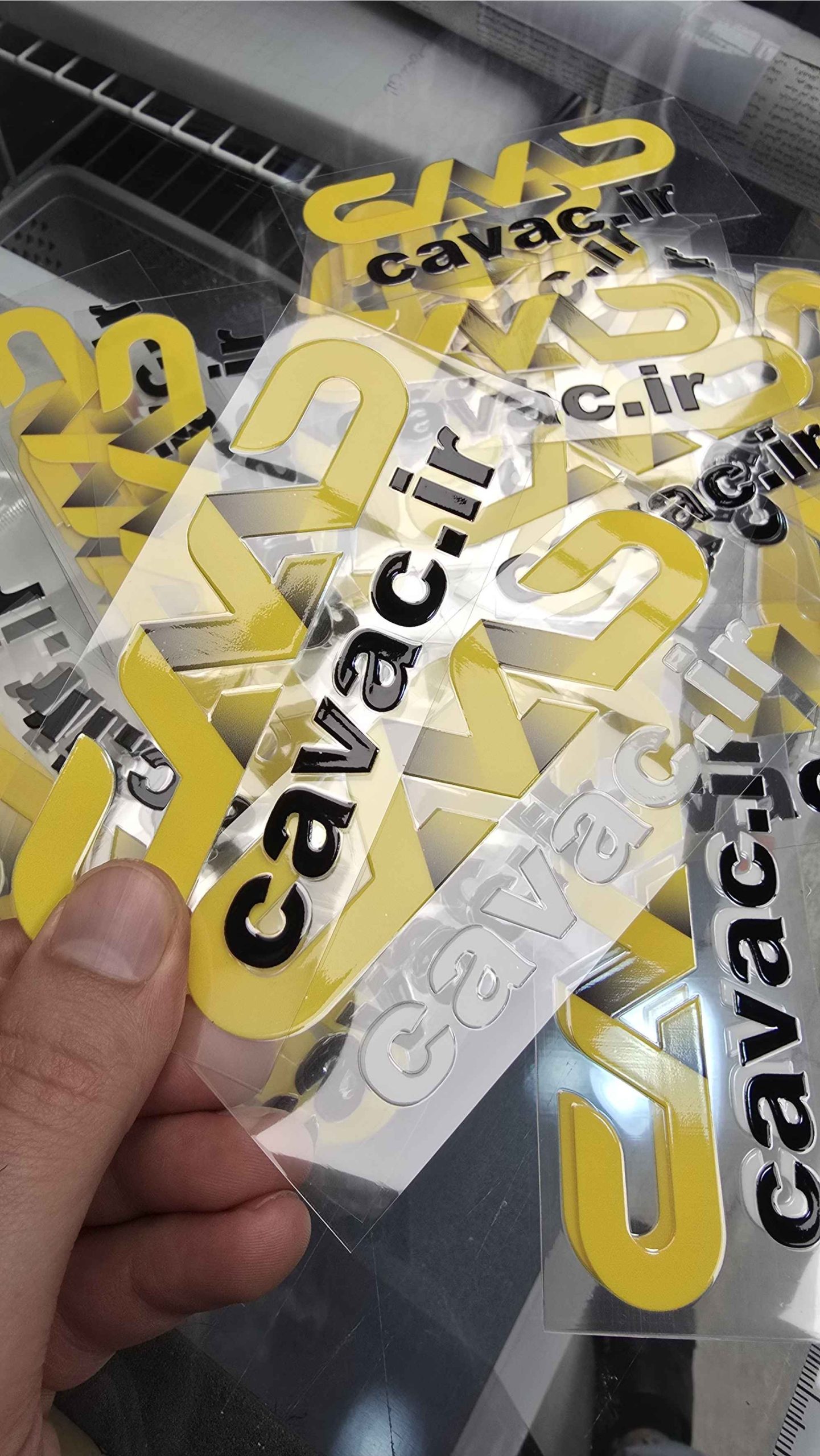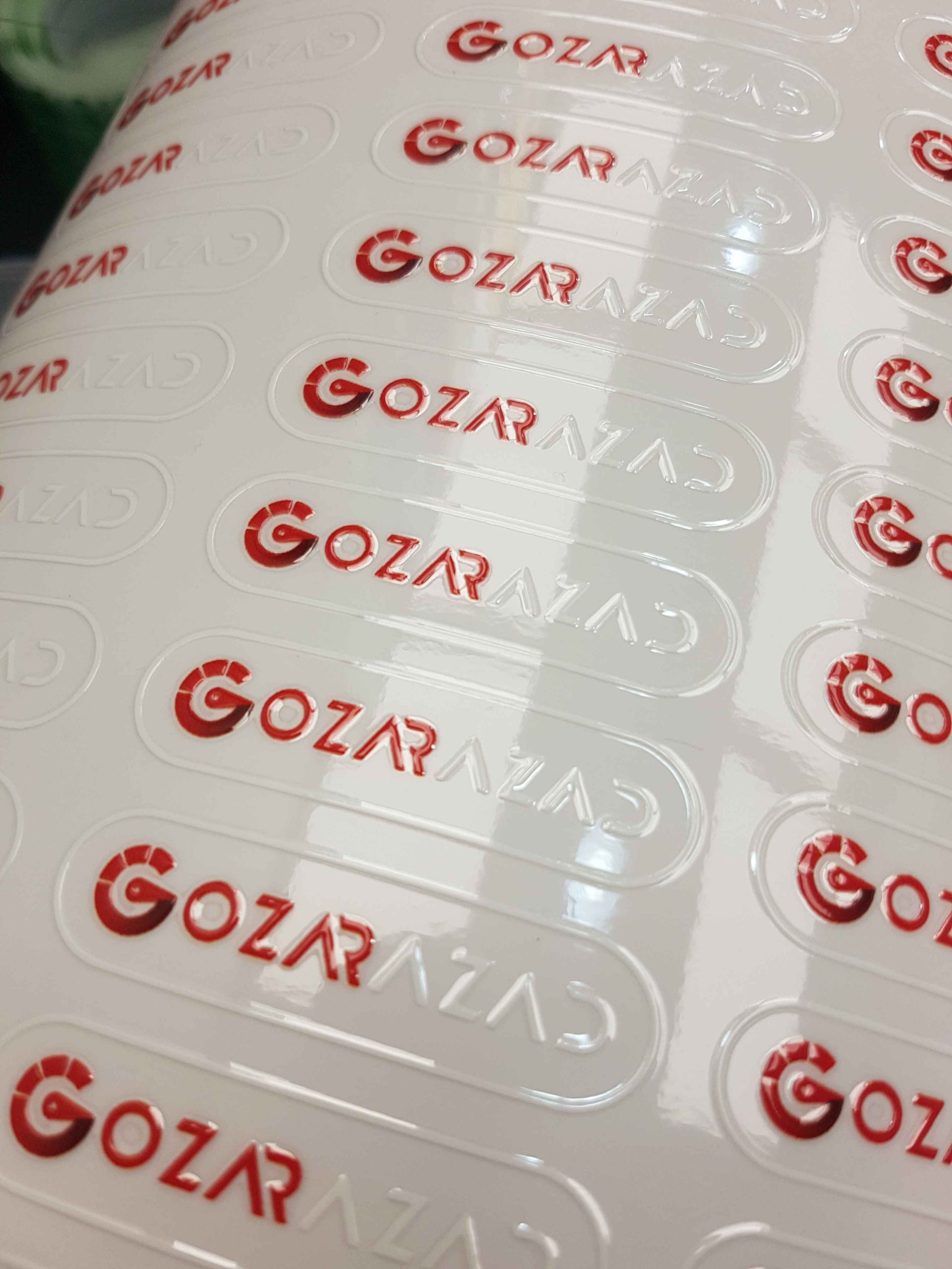 برچسب یووی برجسته متریالی از رنگ و چسب به صورت همزماندارد که با لایه ای از لاک بی رنگ (وارنیش) به صورت برجسته درآمده و جلوه ای بی نظیر را به نوبه خود دارد.